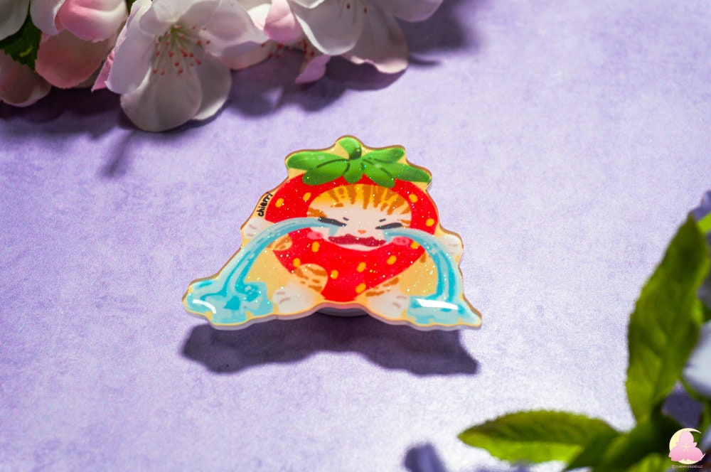 V.C Cute Animal Phone Grips/Kawaii Grip/ Acrylic grips/Glitter acrylic grips/ Crying cat/ Strawberry Cat/ Banana Cat